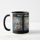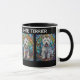 Cuatro hermosas copias de cristal de West Highland White Terrier rodean esta taza. Una hermosa manera de empezar el día con una agradable bebida caliente.