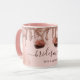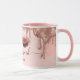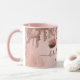 Nuestro diseño presenta nuestros propios ojos cerrados y pestañas originales con sombra de ojos de purpurina falsa. Se añaden hermosos elementos de polvo de maquillaje rosa sonrosado al diseño de fondo para crear un look de lujo y glamour. El diseño de goteo de purpurina rosa dorada rodea la parte superior de la taza de café. Personalizado con tu nombre. Regalo perfecto para cumpleaños, despedida de soltera, boda, etc. Arte de Moodthology.