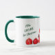 Esta divertida taza de vacaciones muestra una linda imagen de un pequeño gnomo blanco barbudo con un sombrero rojo de Santa que se le cae por los ojos. Está parado detrás de una hilera de bombillas de árbol rojo brillantes decoradas en oro y plata. El texto verde actualmente dice "¡Seré GNOME para los Navidades!" y la fecha, pero puede que fácilmente la cambies a lo que quieras.