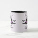Comience sus mañanas con un toque festivo usando esta taza de Halloween con un gorra de brujas y murciélagos voladores sobre un fondo lila claro. Debajo del diseño hay un área de texto personalizable donde puede agregar su nombre o un breve mensaje estacional. Perfecto para tomar café, té o cacao caliente durante la temporada espeluznante, esta taza también hace un regalo de Halloween para amigos, compañeros de trabajo o anfitriones fiestas. Una forma divertida de disfrutar de tus bebidas favoritas con un toque personal.