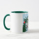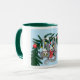 Gris y gato blanco colgando de la parte superior del árbol de Navidad.