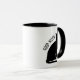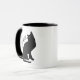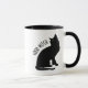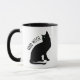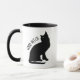Gracioso Halloween Buena Bruja Negro Cat Mug. Gato negro con ojos verdes sentado en silencio. Texto personalizado Buena Bruja. Blanco y negro.
