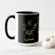 Texto personalizado, Te amamos, Patrón de renos divertidos de oro sobre fondo negro, tazón de café, Añadir tu nombre o texto, Regalo de Navidades únicos de un grupo de familiares, amigos o colegas.