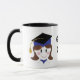 Un lindo tazón de sake para el graduado...chica con el gorra de graduación.