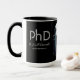 Un tazón con fotos altas para la graduación del doctorado que muestra el nombre del graduado, el campo de estudio, la escuela y el año de clase. La taza incluye el nombre en un tipo de letra de escritura a mano y un diseño en blanco y negro. Obtén uno para el graduado o eliges uno como un favor de partido impresionante. Simplemente agrega la foto e información del graduado, agrega esta taza a tu carrito, y felicitaciones por este gran hito! Moderno Keepsake Black Photo PhD Graduación Mug Holiday Design | ©Melissa Patton - Diseñador