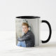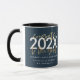 Diseño elegante de tazas para graduación de fotos con escritura moderna en azul y oro. Texto de guión de efecto oro moderno. Parte de una colección.