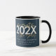 Diseño elegante de tazas de graduación con escritura moderna en azul y oro. Texto de guión de efecto oro moderno. Parte de una colección.