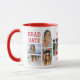 Modern Script Multi Photo Graduate Coffee Mug incluye cinco de tus fotos favoritas de tu graduado universitario o de secundaria con el moderno sobredominio de escritura roja "Graduate". Sencillo, elegante y elegante. Hace el regalo personalizado perfecto para un graduado. Creado por ©Evco Studio www.zazzle.com/store/evcostudio