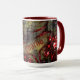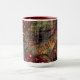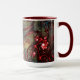 Repetición de un fractal rojo con partes semitransparentes sobre otra imagen abstracta de color y colores más claros prevaleciente.