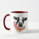 Granja de amapolas I por Grace Popp. Cuenta con un primer plano de una vaca rodeada de vibrantes flores rojas rosadas.