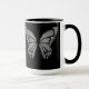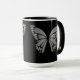 Two butterflies mounted on black coffee mug, simple and exquisite.