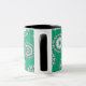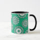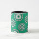 Una taza de 325 ml con mi patrón de Mandala 1 impreso en fondo verde.