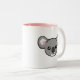 ¡Celebre nuestra fauna australiana con este diseño adorable de la koala! Ofreciendo un dibujo de una koala gris mullida linda haga frente a sonrisa en una taza blanca y rosada del dos-tono.