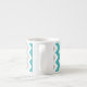 Los galones retros brillantes elegantes y modernos de la aguamarina azul, gris de la turquesa y blanco zigzaguean taza del café express del modelo del vintage de las rayas, completamente adaptable con su texto o la foto, crea una taza verdaderamente única del café express para su fiesta siguiente del café.