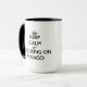 Taza Guarde la calma centrándose en el mango