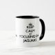 Taza Guarde la calma centrándose en jaguares
