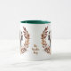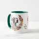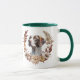 Una corona de otoño en tonos marrones, canela y crema rodea la imagen acuarela de un hermoso perro pintor inglés. La imagen se imprime dos veces en la taza, con el texto de su personalizado entre ellas.