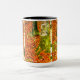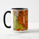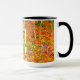 Coffee Mug presenta la pintura de Gustav Klimt Farmhouse con Birch Trees (1903). Un paisaje otoñal de hojas naranjas en un bosque de abedules con hermosas flores azules. Un regalo maravilloso para los amantes del arte Art Nouveau y austriaco.