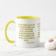 Esta taza de café muestra la promesa de la visión de Dios, como se describe en Habakkuk 2:3 (KJV), dice: 'Porque la visión todavía está por un tiempo designado... seguramente vendrá, no se tardará'. Este potente verso de la Biblia infunde esperanza y paciencia. Presentada como el tercer verso en el segundo capítulo del Libro de Habakkuk, esta escritura se vuelve llamativa cuando se presenta en letra impresa de Rojas, con letras amarillas y contornos negros en un fondo blanco. La llanta y manecilla de la taza tienen acristalamientos que coinciden y están disponibles en tamaños de 11 onzas y 15 onzas. Estos tazones de cerámica son seguros para su uso en microondas y lavavajillas.