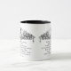 beautifully balanced Catholic devotional mug featuring the Hail Mary prayer in English on one side and Latin on the other, presented in an elegant black-and-white design inspired by traditional Marian artwork. At the heart of each composition is a crowned Marian monogram, surrounded by ornate Baroque scrollwork and floral detailing, evoking the dignity and reverence of sacred Catholic art.