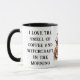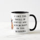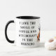 Funny Witch Themed Naranja y Black Pumpkin Halloween Mug - el texto del Personalizable dice "Amo el olor del café y la brujería en la mañana" con un ilustracion acuarela de una taza de café brujera completa con decoración de otoño, calabazas, un gorra de brujas negro y murciélagos. Perfecto para los que aman todas las cosas de Halloween, brujas o solo quieren una taza divertida y divertida para la temporada de otoño.