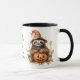 Aquí hay una linda taza de Halloween para los niños que es más divertida que aterradora, y puede ser fácilmente personalizada para un nieto, hijo o hija. Se trata de una pereza adorable que viste al gorra de una bruja naranja y sostiene una linterna naranja jack o'. La imagen se imprime dos veces en la taza, con texto negro en el centro que usted puede personalizar para su propio saludo. Especialmente apropiado para los niños pequeños.