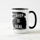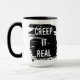 Gracioso tazón de café de Halloween con audaz diseño de trazo de pincelada negra y la frase "Creep It Real". Una opción lúdica para las espeluznantes mañanas de temporada, regalos de Halloween o vajilla de oficina con sentido del humor. Ideal para tomar café, té o cacao caliente durante las festividades de octubre.