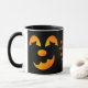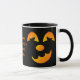 Adorable taza de Halloween con una graciosa cara de una linterna de jack-o' con texto de personalizable.