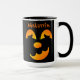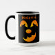 Adorable taza de Halloween con una graciosa cara de linterna jack-o' con nombre de personalizable.