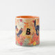 Los motivos de Halloween en cálidos tonos naranjas, amarillos y rojos se acentúan con gatos negros tradicionales en esta taza. Mi arte acuático original de un parche de calabaza, girando hojas de otoño, una luna de miel amistosa y estrellas se muestran en un fondo naranja claro de color caramelo. ¡Incluso hay ratones grises jugando en las hojas! Personalizar con un monograma inicial en negro fuera de los kilómetros - es fácil de hacer usando el símbolo del sistema Personalize y la plantilla en la página del producto. Un divertido acento de decoración de casa o un regalo para la casa o la oficina de cualquiera. Artes y diseño originales, singulares y singulares de Tuzi Williams.