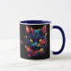 Halloween personalizado, gato asustado, bruja o mago. El nombre se puede editar. Selección de colores para asas y dentro de la taza.