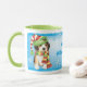 Celebra las vacaciones con adorables cachorros Beagle con gorras de reposición a rayas y bufandas en medio de copos de nieve y las palabras: ¡Feliz Día de Amanecer! Excelente idea de regalo de vacaciones para la familia y amigos amantes de Beagle.