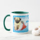 Celebra la temporada navideña con un adorable cachorro Pug sentado en un sombrero de Papá Noel entre copos de nieve y las palabras: ¡Feliz cumpleaños! Gran idea de regalo de vacaciones para la familia y amigos amantes de Pug.