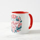 Celebrate the special woman in your life with this beautifully crafted "Happy Mother's Day" mug. Featuring a warm coral-pink script that feels almost embossed, this graphic is framed by a lush, circular arrangement of deep teal and forest green leaves, delicate pink blossoms, and twin interlocking hearts at the top. The high-contrast color palette pops brilliantly, offering a modern yet timeless aesthetic.