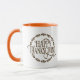 This ceramic coffee mug is shown in a festive happy thanksgiving print.