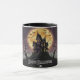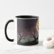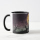 Get your spook on with this gorgeous Haunted House Halloween Mug! It features a classic purple and black spooky mansion silhouetted against a huge yellow Full Moon, complete with flying bats and a skull detail. This black accent mug is a must-have for all your October brews!