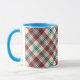 Un divertido tazón de café de jengibre azul y blanco, con un patrón de revisión de madras rojo, beige y azul oscuro de Borgoña. Parte de la colección "Heffalumps" de Posh & Painterly.