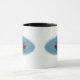 Una taza con un dibujo de un helicóptero B2B rojo en ambos lados.