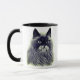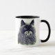 El café atrapa un negro, mientras que el retrato gris de un hermoso gato persa