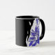La imagen es un ilustracion estilizado de una flor de loto azul posicionada dentro de una forma que se asemeja a la isla de Sri Lanka. El contorno de la isla se presenta en negro intenso, creando un fuerte contraste con la flor y el fondo blanco dentro del contorno. La flor de loto es el foco central, representada en tonos de azul violeta con toques de plata o gris en los pétalos, dando una textura de acuarela. La parte central de la flor es una sombra más clara, casi blanca. Hay varios brotes, abiertos y cerrados, que sugieren el proceso de crecimiento del loto. Los pechos y pétalos se presentan delicadamente, lo que transmite una sensación de fragilidad y belleza. El tallo de la flor es una línea simple y oscura que corre verticalmente. El estilo de la flor recuerda al arte asiático tradicional, donde el florecimiento del loto tiene un significado simbólico. El fondo de la silueta cingalesa es blanco suave, con un fondo neutro que resalta los tonos azules de la flor. Este espacio blanco tiene un aspecto ligeramente texturado o acuarela, reflejando el conjunto del arte de la imagen. El ambiente general es sereno y pacífico, enfatizando la belleza de la flor y el simbolismo que aporta a la imagen. La combinación de la flor estilizada y el contorno del mapa crea una pieza única y cautivadora. El fondo negro aumenta aún más el impacto visual de los elementos contrastantes.