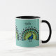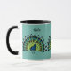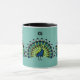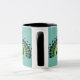 Esta taza cuenta con hermosas y lindas acuarelas coloridas verde azuladas turquesa azul turquesa negro dreamy pavos reales gloria completa con el nombre personalizado Monograma sobre fondo verde verde azulado. Es un regalo único y elegante para los amantes del pavo real. Cualquier regalo ocasional como cumpleaños, día de la madre o aniversario para alguien especial. Puede cambiar el texto y el color o eliminarlo mediante la herramienta de personalización.