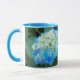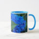 En esta taza de café de cerámica se muestra una foto de envoltura de la preciosa y azul Mophead Hydrangeas para tomar su bebida caliente o fría favorita. Seleccione su estilo y color de taza. ¡Un diseño floral y divertido!