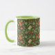 Coffee Mug con adorable patrón, suministros de costura - tijeras, botones, botellas de hilo, agujas - dispersas en el campo verde de la botella. Este diseño, elaborado a partir de un collage de papel hecho a mano, hace grandes regalos para artesanos y alcantarillas. © Julia Khoroshikh www.juliakhoroshikh.art #coffeetime #giftForrafter #homehobbies #haberdashery