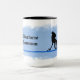 A quality coffee mug for any hockey player or fan. The design features the silhouette of a player in action and placed on an artistic blue background. Personalize it with a name on the background. The text is easily changed by using the template. Selecting “Personalize this design” offers you several edit options to easily change the text (wording, plus type font, color, size, position) and to edit the design elements. You may also want to scroll down to the section “Transfer design to a product” for a few suggestions about other items this design can be used on. Other mug styles are also available for this design. Check out Options.