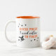 "Hocus Pocus necesito café para enfocarme", la graciosa taza de café personalizado para Halloween presenta un moderno diseño decorativo de naranja y tipografía negra con acentos de bruja voladora y estrellas.