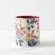 La acuarela caprichosa deja el diseño para una taza. El diseño presenta un patrón impecable de hojas florales acuáticas en rosa y verde azul naranja.
