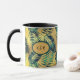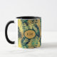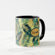 Hojas verdes exóticas de patrón disperso mostradas sobre un fondo dorado. Personalización de texto en 2 lugares.