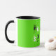 Hola Primavera Personalizado lindo Texto negro y blanco sobre fondo verde brillante café taza