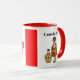 Esta es una taza divertida en honor del Día de Canadá que muestra a un hombre usando un barril canadiense de jarabe de arce en un lado y luego la bandera canadiense en el otro. Puedes cambiar el texto al nombre de una persona si lo deseas, en lugar del Día de Canadá. Y puse esto en una taza roja para ir con la bandera canadiense. Pero, eres libre de comprar este diseño en cualquiera de los otros colores, y otros artículos de bebida ofrecidos. Diseñado por Sheila Cicchi, Brownielocks.com. Todos Los Derechos Reservados.