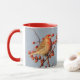 Añade un toque natural y caprichoso a tu café, té o bebida caliente favorita con esta taza de ambiente salvaje. ¡La idea de regalo perfecta para los amantes de las aves! "Pequeño Rojo" sentado al lado de muchos rojos: una bonita finca macho posa al lado de algunas deliciosas bayas de rosa de espina dorsal/montaña (una favorita con muchos residentes de plumas todo el año) en el Área de Manejo de Vida Silvestre de la Bahía Fronteriza. Basado en la fotografía original de W.H. Sim. Todos Los Derechos Reservados. Ver más en zazzle.com/walkswithnature